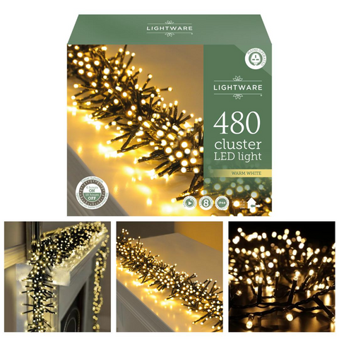 480 LED Warm White Cluster Christmas Lights (14.58m)