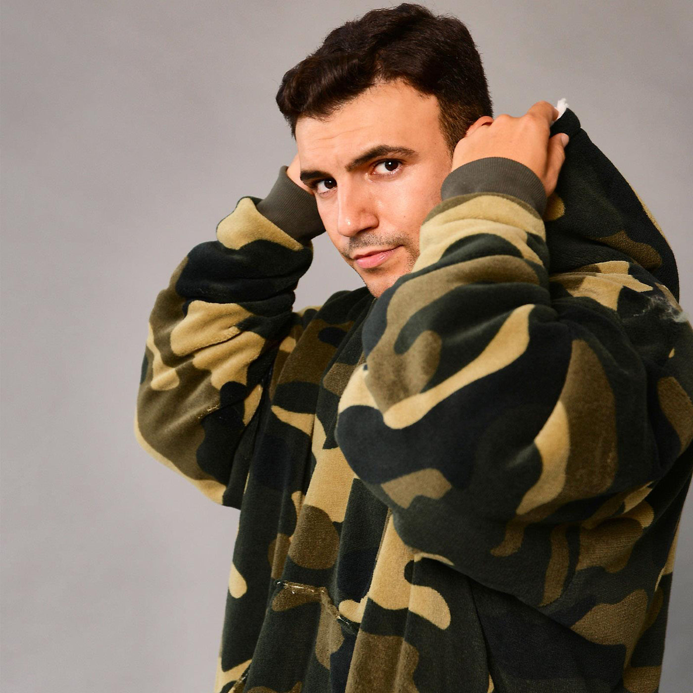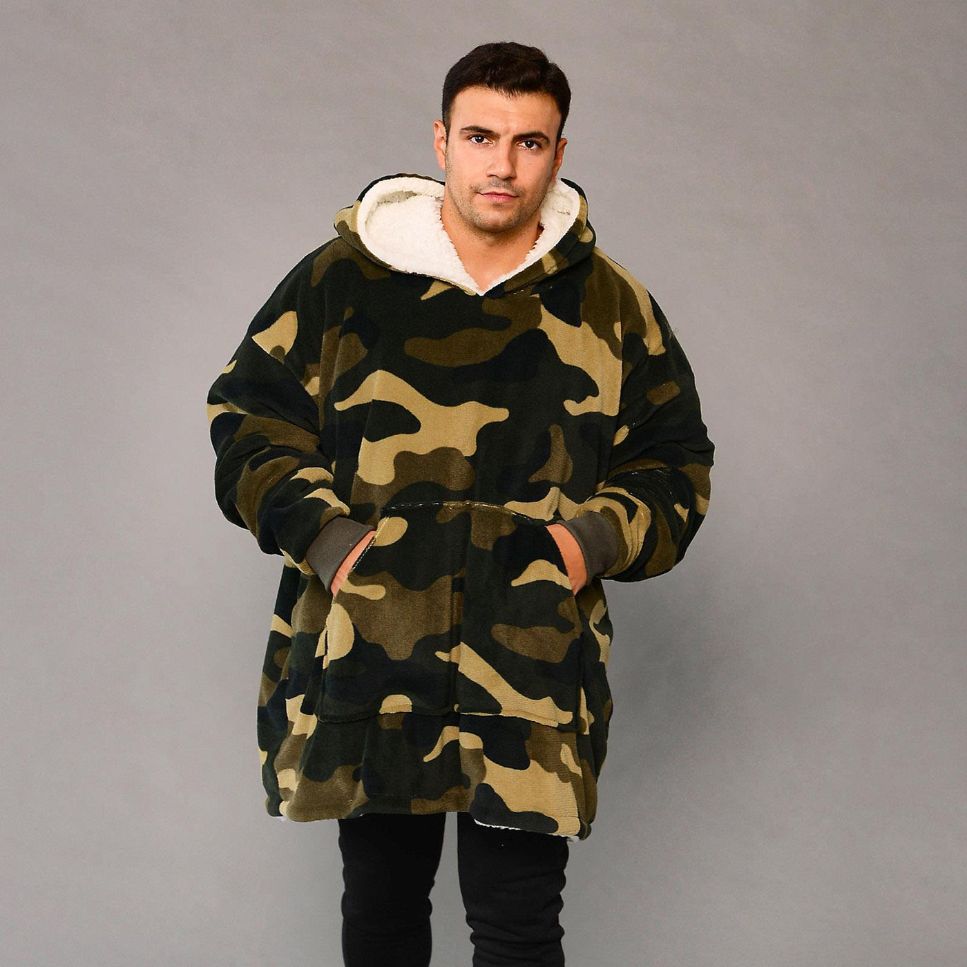 Unisex Oversized Sherpa Fleece Hoodie Blanket – Camouflage Sale
