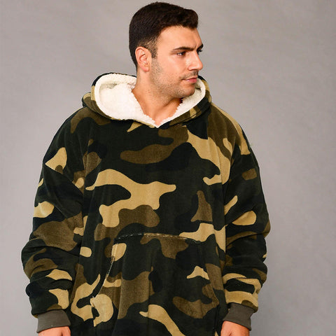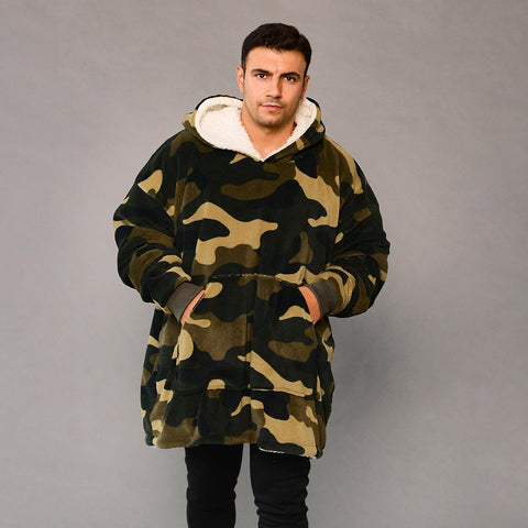 Unisex Oversized Sherpa Fleece Hoodie Blanket – Camouflage