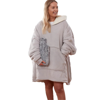 Unisex Oversized Sherpa Fleece Hoodie Blanket – Silver Grey